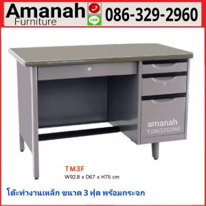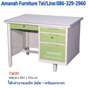 โต๊ะทำงานเหล็ก ขนาด 3ฟุต พร้อมกระจก รุ่น TM3F คุณภาพดี ราคาถูก