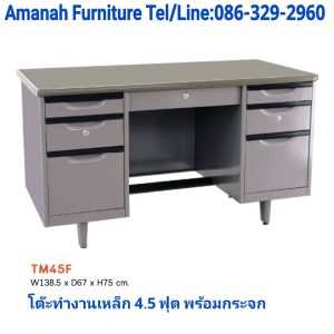 โต๊ะทำงานเหล็ก ขนาด 4.5 ฟุต พร้อมกระจก รุ่น TM 4.5F คุณภาพดี ราคาถูก