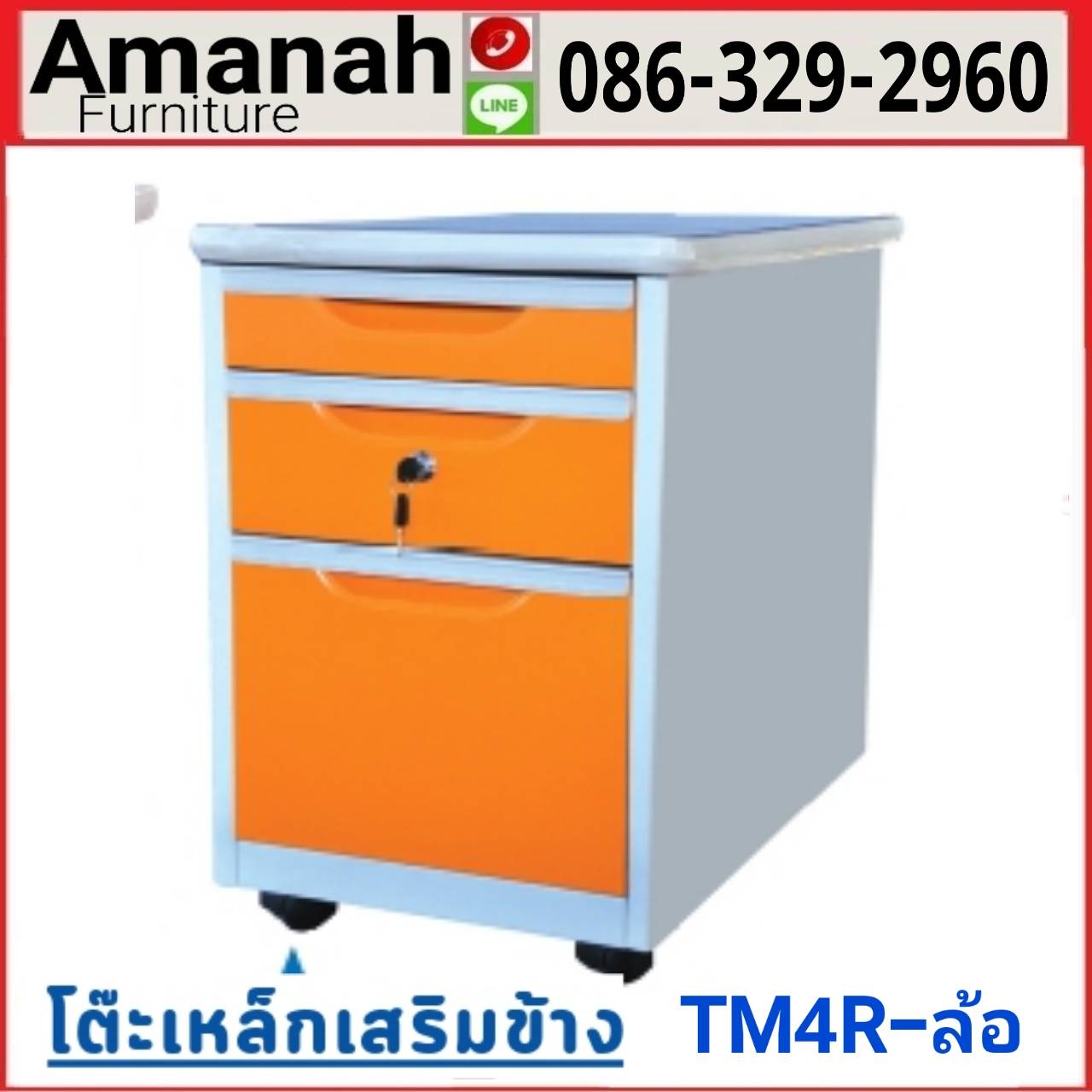 โต๊ะเหล็กเสริมข้าง มีล้อ รุ่น TM4R คุณภาพดี ราคาถูก