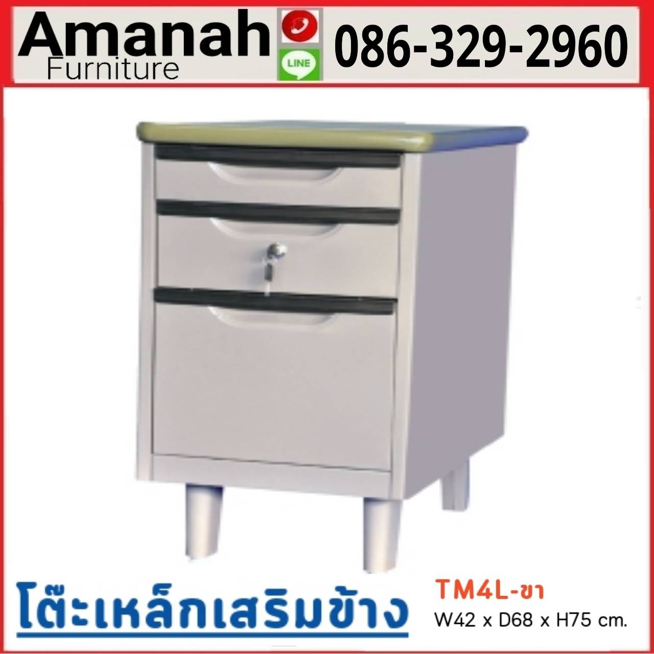 โต๊ะเหล็กเสริมข้าง มีขา รุ่น TM4L คุณภาพดี ราคาถูก