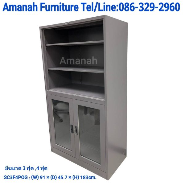 ตู้เอกสารเหล็ก 2 บานเปิด บนโล่งล่างกระจก รุ่น SC3F4POG คุณภาพดี ราคาถูก