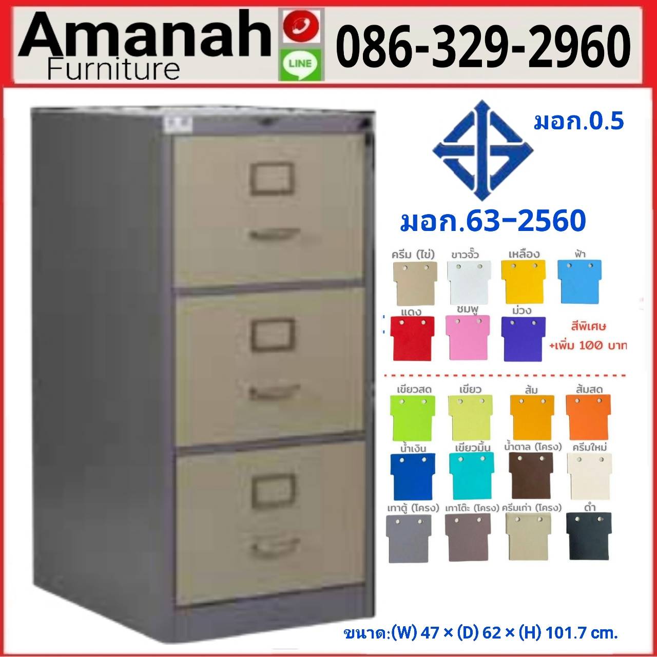ขนาด : กว้าง 47 x ลึก 62 x สูง 101.7 ซม.