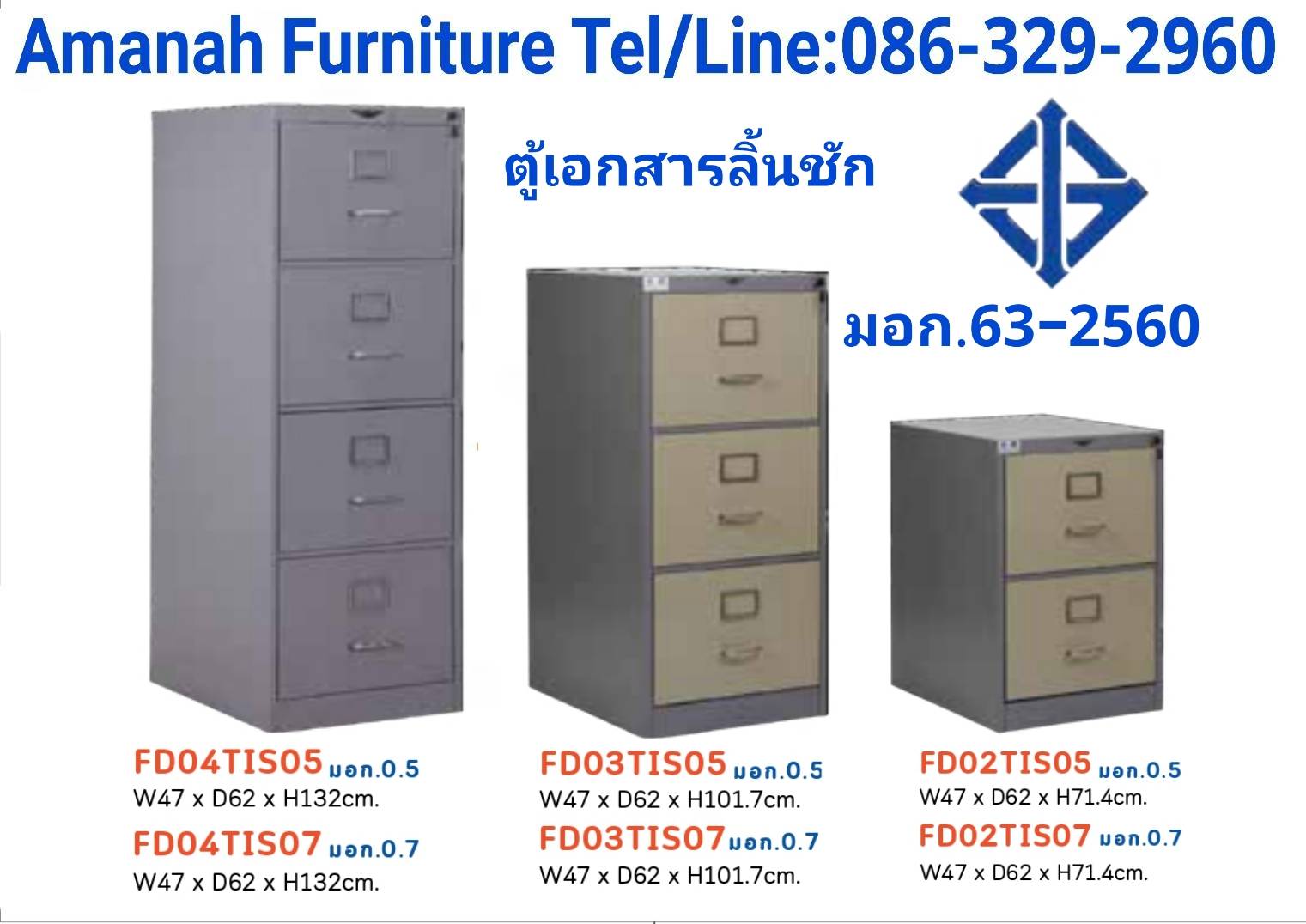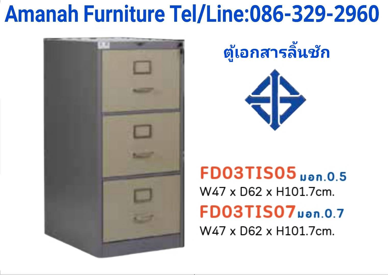 ตู้เอกสาร 3 ลิ้นชัก มอก.รุ่น FD03TIS05 คุณภาพดี ราคาถูก
