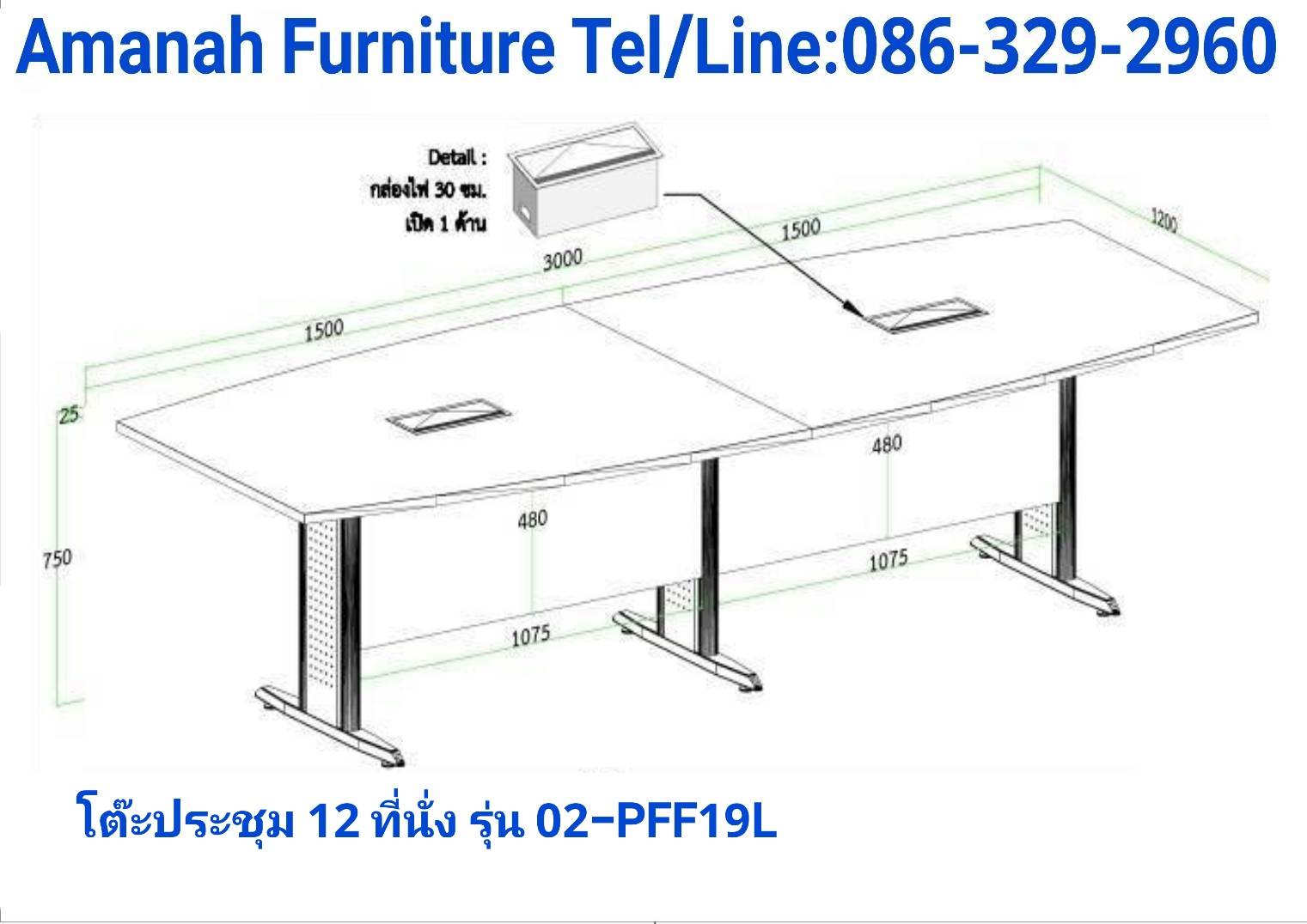 -โต๊ะประชุม ขนาด (ยาว) 3.00 x (กว้าง) 1.20 x (สูง) 75 cm.